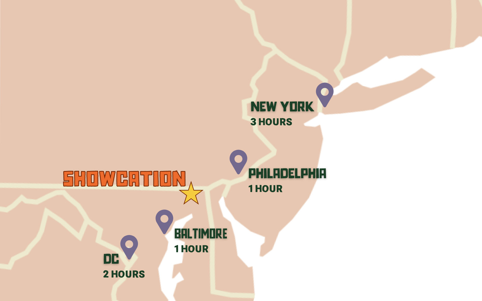 Showcation is easily accessible by car or by Amtrak + the Showcation shuttle bus.